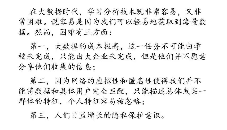 为了使学习分析起作用,需要获得与学习目标相关的海量学习者数据,需要了解学习者如何表现才能被认为达到了特定学习目标,以及究竟哪些信息适合这些有特殊学习需求的学习者。因此,通过分析这些有特殊学习需求的学习者,我们可以利用学习分析技术自动生成学习者所要学习的内容。这就是学习分析的个性化功能在起作用。我认为这将会在中国发生,虽然现在还没有发生。