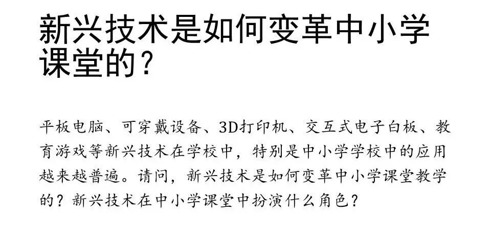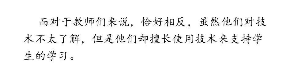 访谈者:平板电脑、可穿戴设备、3D 打印机、交互式电子白板、教育游戏等新兴技术在学校中的应用越来越普遍。您认为新兴技术是如何变革课堂教学的?新兴技术在课堂教学中扮演什么角色?